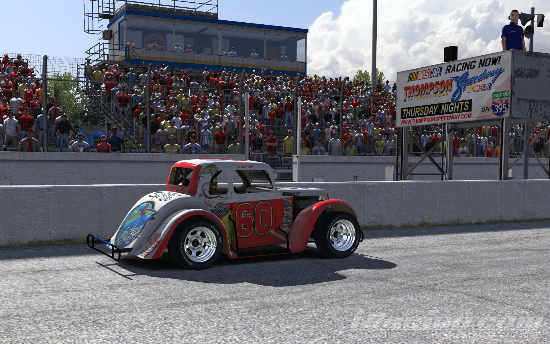 Veteran BRL racer Brian Neff takes the checkered flag at Thompson International Speedway in the SimHQ Motorsports Legends Series. Ronald Henrie finished 2nd followed by Chris Roberts, Matt Hoose, and Keith Haney.