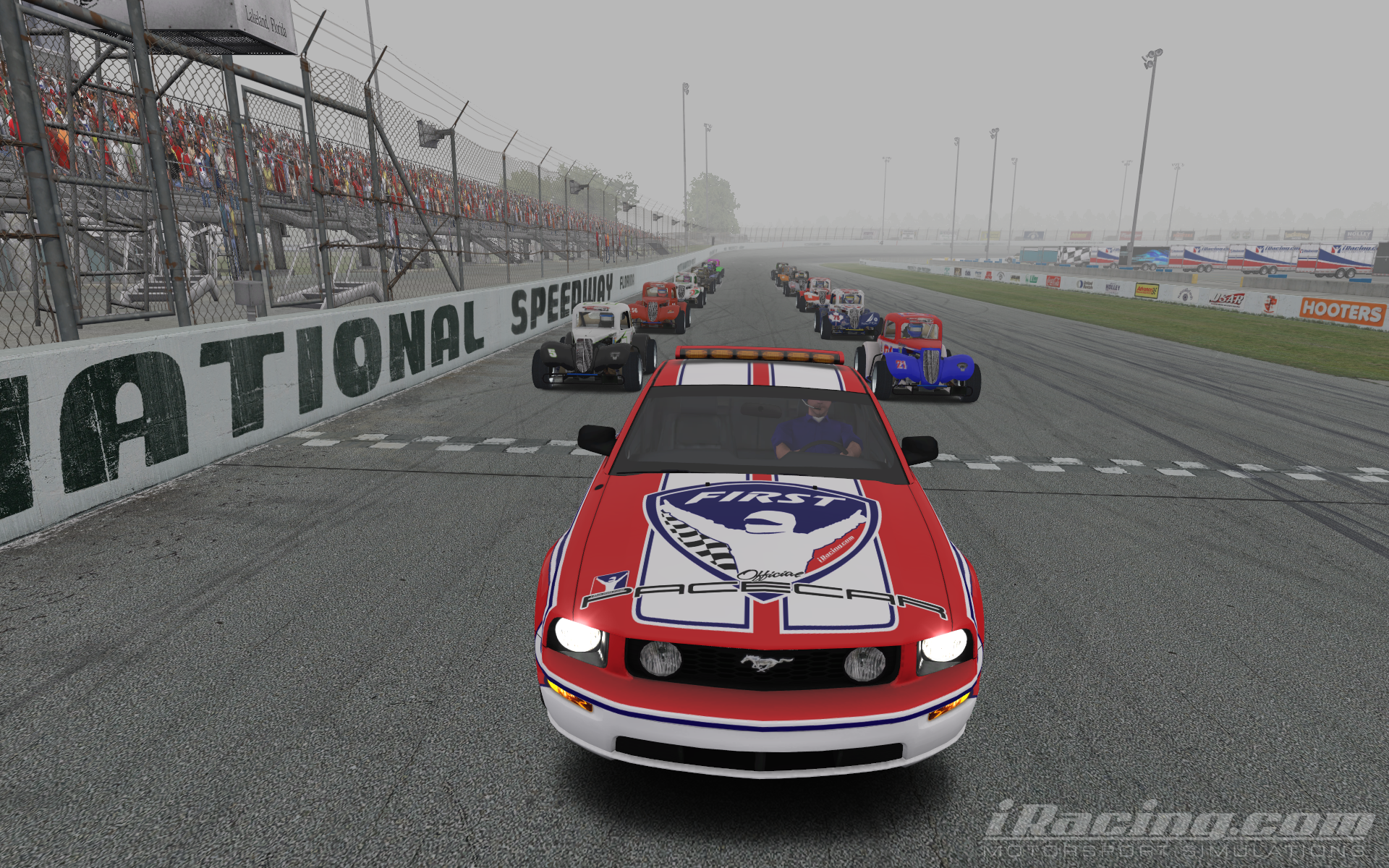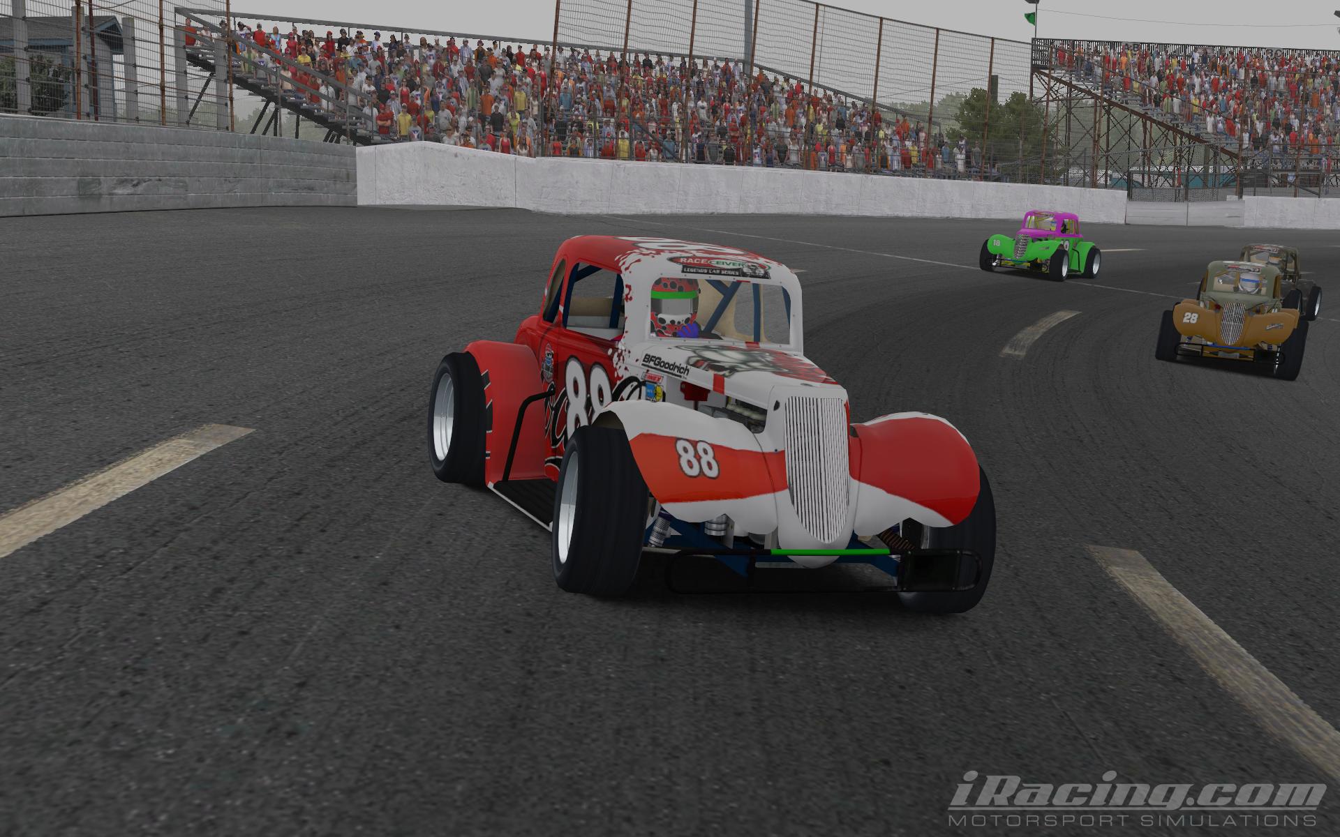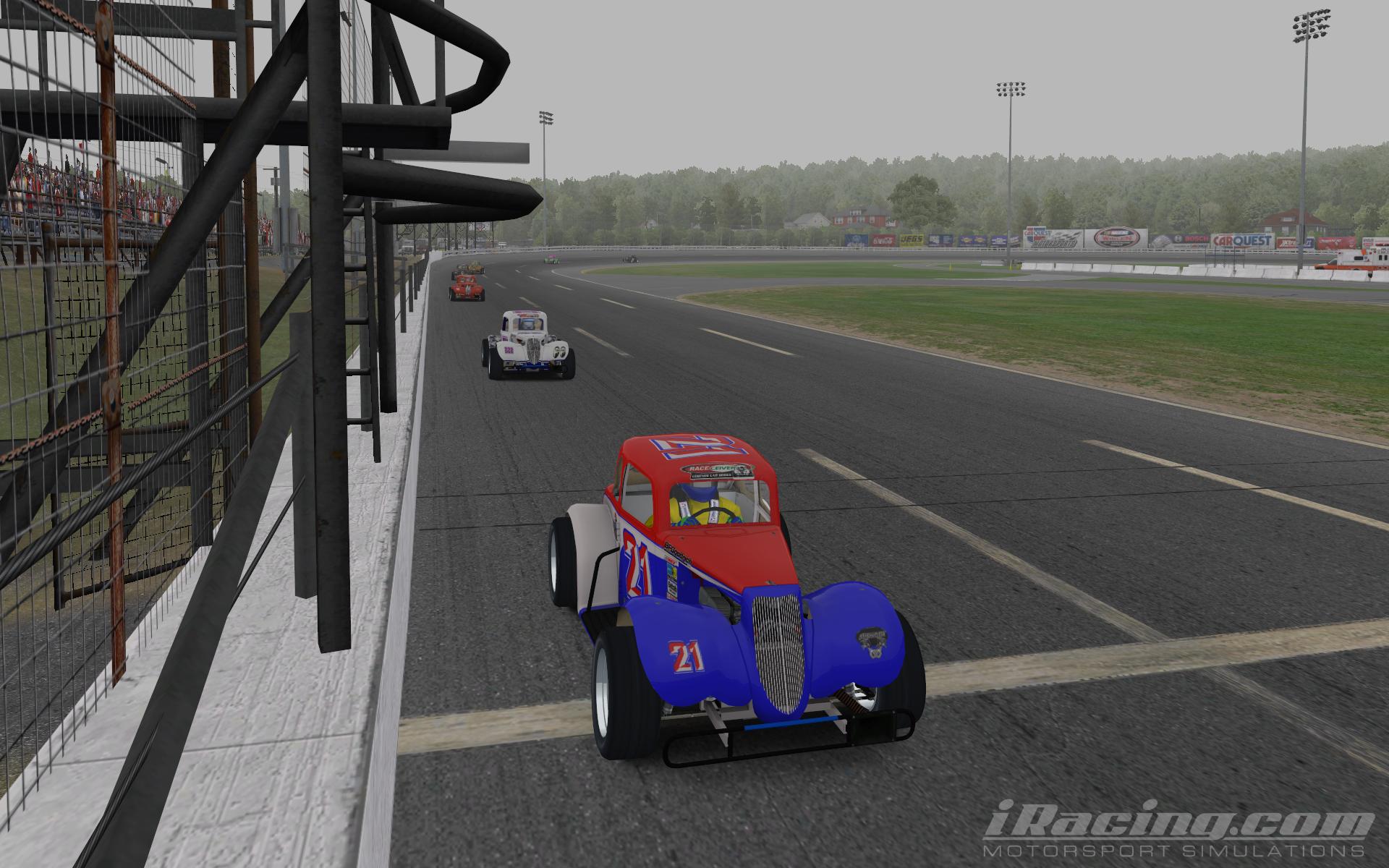 In what turned out to be a battle with the NetCode, a geek term that few can explain clearly, our first race under the lights was a little spooky. Pace car driving through walls,(who knew a Mustang could do that?) engines blowing for no apparent reason, leader getting the black flag on a restart, and Lowell finishing the race without hitting anything. Strange indeed.